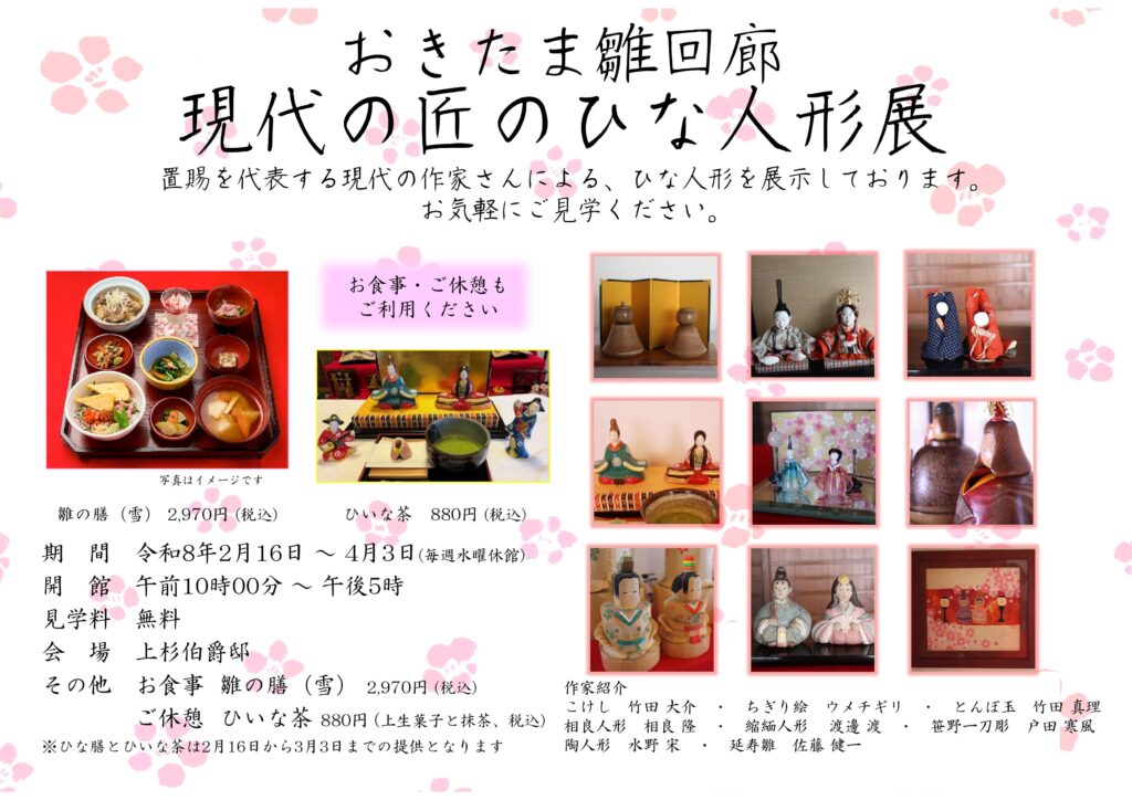 The Uesugi Earl Residence will host the special event “I, Too, Am a Hina Doll” from Saturday, February 21 to Tuesday, March 3, 2026.